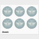 Scellez vos enveloppes d'invitation avec ces élégants autocollants d'adresse de retour bleu avec ailes d'ange blanc avec une typographie serif de visage travaillé dans le design sur un chic arrière - plan bleu clair shabby. Personnalisez avec votre nom et adresse de retour en blanc autour du bord du cercle. Vous pouvez même les utiliser comme étiquettes sur des babines de baume à lèvres ou des faveurs de baby shower garçon. Conçu pour correspondre à ma collection d'invitation d'ailes d'anges. Pour en savoir plus, visitez www.zazzle.com/vginvites