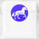 Jolie image d'un cheval blanc jn silohuette contre un arrière - plan bleu royal avec un cadre et les mots "Joyeux anniversaire" en bleu pastel. Pour les amateurs de chevaux.
