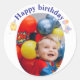 Faites un anniversaire spécial avec cet autocollant d'anniversaire personnalisé avec une photo de la personne d'anniversaire! Parfait pour les fêtes, l'emballage cadeau ou les décorations, cet autocollant de haute qualité ajoute une touche personnelle et festive à la célébration. Facile à appliquer et disponible en différentes tailles, c’est une façon amusante de rendre l’anniversaire encore plus mémorable!