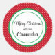 Salutation moderne "Joyeux Noël", motif de points suisses rouge et blanc avec le nom encadré sur ces autocollants ronds. Imprimé en couleur vive sur papier brillant ; mat est également disponible. Personnalisez facilement en utilisant le Modèle fourni. Vingt autocollants de 1,5 po par feuille ou six autocollants de 3 po par feuille. Pour plus d'informations, reportez-vous à la section "À propos de ce produit" à côté.