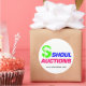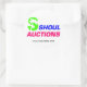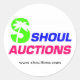Autocollant blanc de 3" avec logo Shoul Auctions en couleur. Feuille de 6.