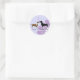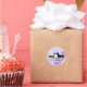 sticker rond doux fait en bleu perwinkle, avec une fleur violet stylisée, sur l'arrière - plan. Des graphismes mignons d'un dachshund brun et noir embrassant, avec des coeurs de lavande flottant vers le haut. Le texte en noir dit Love is in the Air, et est personnalisable pour lire tout ce que vous voulez.