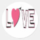 Amour avec un coeur rose chaud dans le mot autocollant.