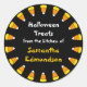 Un cercle de maïs bonbon contre le noir profond donne une illusion de dents dans une bouche béante. Les bonbons pointent vers le message décrivant vos délicieuses friandises d'Halloween. Disponible avec des produits correspondants.