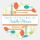 Les accessoires rétro pour la cuisine et les ustensiles pour manger sont présentés sur ce joli autocollant pour un étiquetage de vos cadeaux alimentaires ou recettes. Les couleurs sont à la mode et gaies dans l'aqua turquoise, le vert citron et l'orange. Une touche de fausse ric rac lui donne aussi une sensation vintage !