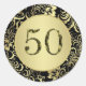 Damas fleurie dorée sur un Autocollant de fête de 50e anniversaire arrière - plan noir