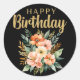 Rond Sticker de fleurs d'aquarelle d'anniversaire heure
