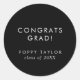 Cet autocollant chic noir congrats grad graduation est parfait pour une grande fête moderne. Le design sobre et sombre présente une typographie minimaliste classique en noir et blanc, dans un style élégant et sophistiqué. Personnalisable dans n'importe quelle couleur. Personnalisez votre autocollant de faveur avec le nom de l'année d'études supérieures et de classe.