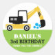 Dessin d'excavatrice pour la fête d'anniversaire des enfants. Convient aux garçons qui aiment camion, bulldozer, pelle, grue et plus gros transports. Mignonnettes autocollantes pour les enfants fête d'anniversaire en faveur ou douche nuptiale. Customiser le libellé pour toute occasion avec des enfants.