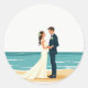 Comprend 20 petits autocollants sur une feuille. Illustration de charme d'un marié debout sur la plage, parfait pour un décor et des cadeaux sur le thème du mariage.
