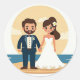 Comprend 20 petits autocollants sur une feuille. Baguette de dessin adorable d'une mariée et d'un marié sur la plage au coucher du soleil, parfaite pour la décoration et la personnalisation mariages.
