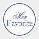 Sticker de mariage "Son préféré" en bleu marine. Stickers pour n'importe quelle occasion mariage - fête de fiançailles, dîner de répétition, cérémonie, cocktail, réception de mariage, brunch du dimanche, douche nuptiale, soirée bachelorette, fête des poules et plus ! Montrez sa collation préférée ou offrez-la comme une faveur à vos invités. Disponible en différentes tailles de couleurs et de polices