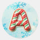 Rond Sticker de Noël "A" sucre de canne, Stripes Festiv