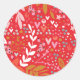 Rond Sticker de Noël Floral Rouge