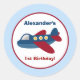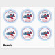 Conception du thème du transport aérien. Cet autocollant rond mignon est customisé avec vos propres 2 lignes de texte.