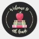 Ces faux stickers ronds de tableau avec une pile de 3 livres et une pomme rouge sont parfaits pour accueillir vos nouveaux élèves le premier jour de l'école. Personnalisez le texte avec votre niveau de qualité. Ce même design est également disponible en blanc. © ArianeC Illustrations-Tous droits réservés