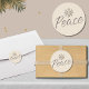 Ajoutez une touche d'élégance à vos mailings et paquets de vacances avec ce bel autocollant rond. L'arrière - plan léger est orné d'un flocon de neige doré au champagne brossé au sommet, symbolisant la sérénité de la saison. Sous elle, le mot "Paix" est délicatement écrit en caractères doux, capturant l'esprit de tranquillité et de bonne volonté. Parfaits pour ajouter une touche de coeur à vos salutations festives, ces autocollants sont une façon charmante de répandre la joie et la chaleur en cette période de fêtes. Utilisez-les pour sceller des enveloppes, décorer des enveloppes cadeaux ou décorer des faveurs de vacances. Élevez votre présentation de vacances avec ce design captivant et significatif.