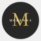 Autocollant monogramme professionnel noir et or idéal pour l'emballage d'entreprise, les cadeaux de clients, ou les faveurs événementielles. Ajoutez votre initiale et votre nom pour répondre à vos besoins en matière d'image de marque en vrac.