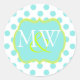 Élégant autocollant d'enveloppe mariage, avec une aquamarine sur le motif à pois blanc et une zone de monogramme d'aquamarine de chartreuse décorative, au milieu. Personnalisez le texte avec les initiales de la mariée et du marié. Jolie touche de finition à nos invitations de mariage élégant Aquamarine et Chartreuse.