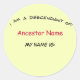 Rond Sticker - Descendant de ... (ancêtre) Nametag