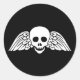 Rond Sticker d'Halloween crâne à ailes de pierre graveu