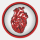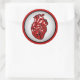 Montrez votre style avec cet autocollant qui s'arrête au coeur! Cette conception présente une illustration anatomique du coeur humain sur un arrière - plan circulaire rouge, noir et blanc. Fait une grande décoration ou un cadeau pour les valentins, l'amour, les coeurs et les amateurs d'anatomie.