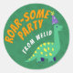 Complétez votre look de fête avec ces Stickers ronds Dinosaur modifiables! Adorable pour sceller les enveloppes, les sacs de faveur ou les toppers de cupcake. Dispose d'un mignon brontosaurus avec le texte "ROAR-some Party!" — parfait pour toute célébration d'anniversaire de dino.