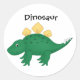 Des graphiques mignons d'un dinosaure vert et jaune. Le texte en noir indique Dinosaur. Grande fête d'anniversaire ou enveloppe sceau pour une fête d'enfants à thème dinosaure.