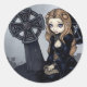 Doomed From The Start - sûrement une histoire tragique derrière celui-ci. Une belle, mais triste, fée gothique aux cheveux dorés pleure à côté d'une pierre gravée de croix celtique. Ma propre peinture acrylique originale.