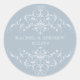 Des ornements antiques romantiques en blanc contre un arrière - plan bleu argenté clair servent de cadre à cet autocollant. Customisez-le avec votre nom et la date de l'événement. Cochez-le sur des enveloppes ou de la correspondance, des sacs de protection, des boîtes étiquettes, etc. Un autocollant adapté à toutes les occasions : mariages, fêtes de fiançailles, une sauvegarde de la date ou un événement d'entreprise. Disponible en couleurs alternatives avec cartes assorties, faveurs et postage.