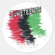 The word juneteenth with three colors in the background. Juneteenth is a holiday in the United States that commemorates the end of slavery, and is regularly observed with celebrations of African-American Culture