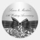 Sticker Anniversaire. Design floral argenté et noir avec arc bijou noir. Exclusive Zazzle. Customisez avec vos propres détails. VEUILLEZ NOTER toutes les images plates ! Ils n'ont pas de vaches, de diamants ou de bijoux! !