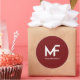 Logo MuslimFoodie en blanc sur arrière - plan marron solide.