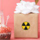 Étiquette de symbole de radiation en noir et jaune de prudence.