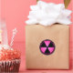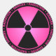 Colorant noir et rose de symbole de radiation avec texte d'avertissement.