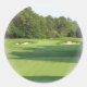 Terrain de golf avec un fairway vert et des bancs de sable.