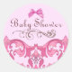 Ce sceau d'enveloppe de Baby shower personnalisable élégant présente un motif damassé rose sur un arrière - plan rose doux. Customisez-le en ajoutant vos détails dans la couleur et la police de votre choix !