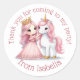 Rond Sticker en aquarelle florale Princess and Unicorn