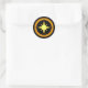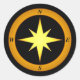 Autocollant noir avec symbole de boussole jaune bronze.