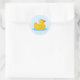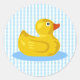 Autocollant en caoutchouc Ducky. Canard en caoutchouc sur arrière - plan bleu et blanc - si mignon.