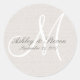 Un autocollant de lin rustique et de mariage monogramme blanc.