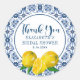 Un joli autocollant de remerciement décoré de citrons et de tuiles bleues italiennes. Parfait pour remercier vos invités mariages ou de douche nuptiale Conçu pour vous par Blackberry Boulevard.