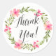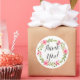 Rond Sticker en Merci à l'aquarelle verte et rose