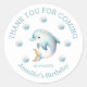 Joli dauphin d'aquarelle dans les tons bleu, rose et or sur un arrière - plan blanc immaculé, avec un message de remerciement personnalisable et la date de l'événement, parfait pour remercier vos invités. Ces autocollants sont parfaits pour joindre des cadeaux pour que vos invités se sentent appréciés pour assister à votre fête d'anniversaire.