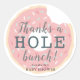 Ce mignon et moderne " grâce à un tas de trous ! " baby shower merci autocollant présente un arrière - plan blanc avec un beigne rose et des arroses. Personnalisez-vous pour répondre à vos besoins. Vous pouvez trouver d'autres produits correspondants dans mon magasin.