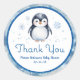Ajoutez une touche de finition glacée à vos faveurs de fête, enveloppes ou sacs cadeaux avec cet adorable sticker de remerciement rond! Doté d'un pingouin de bébé aquarelle, de flocons de neige de style parties scintillant et de tons bleus glacés, il est parfait pour les baby showers d'hiver et les célébrations à thème arctique. Personnalisez avec votre nom et la date de l'événement pour un envoi sucré.