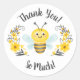 Un joli bourdon noir et jaune avec des fleurs avec les mots, le Merci décore tellement cet autocollant. Amusez-vous pour une faveur de parti baby shower. Conçu pour vous par Blackberry Boulevard.