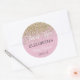 Autocollant rond rose pour baby shower faveur avec fausse parties scintillant or.