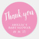 Typographie simple Sticker Baby shower de bébé rose fille Merci. Baguette de baby shower en rose et blanc - personnalisez l'autocollant avec votre nom et votre date. Idéal pour un baby shower, une nouvelle fête de bébé, un sexe de bébé révéler la fête ou pour toute autre occasion.