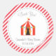 Autocollant rond pour baby shower faveur avec design de tente de cirque.